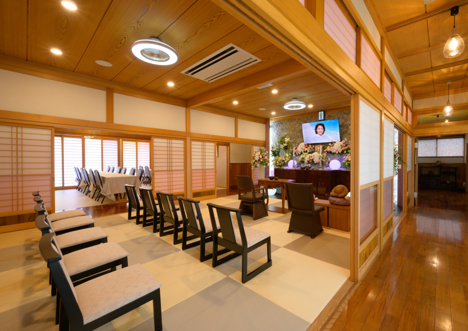 お孫さまやひ孫さまが集まっても十分な広さがあり、故人さまとの「ご縁」を大切にしながら、ご家族皆さまで心おきなくお見送りいただける一日一組限定の家族葬専用会館です。