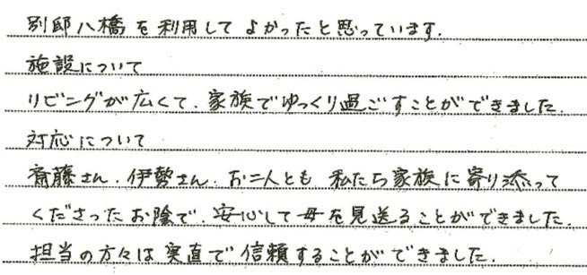 協和会館をご利用の大仙市/T様(男性) R6.10 - 直筆で